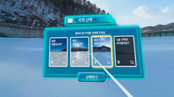 游戏开始时,用户在韩国江原道洪川郡、华川郡和平昌郡之间选择一个进行游戏的空间,并根据经过的计时捕捉条拿起VR设备的控制器。