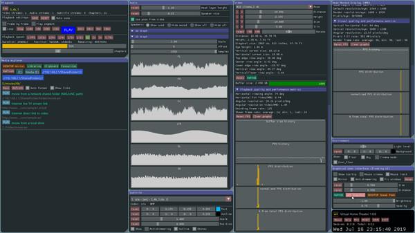 虚拟家庭影院(VHT)是一个视频播放器,一个音频播放器和一个桌面镜像软件,可以模拟媒体文件中作为虚拟声音对象或虚拟扬声器的音频通道,从而在VR中提供真正的3D空间音频,从而取代了旧的“头戴式耳机”。锁定”立体声音频技术。