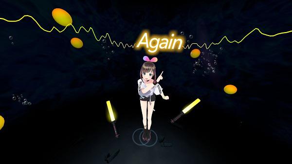 在游戏中,你是Kizuna AI表演阶段的观众。感受这首歌的节奏,用你的笔轻击飞向你的音符。